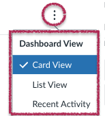 Card view is recommended for new students just starting in Canvas because the other options may only reveal your recent activity or future 'To Do' items that not relevant until the course introduction has been completed.