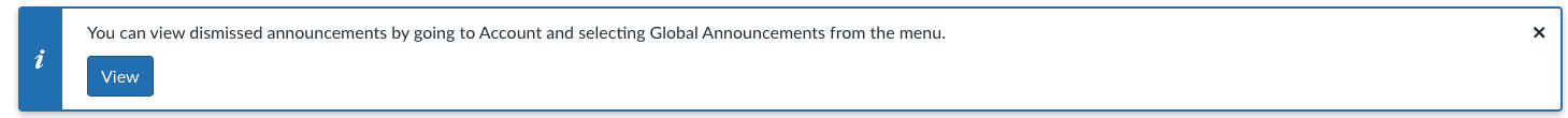 Your Dashboard may include global announcements for important reminders, office closures, other course updates at the very top of the page. You can remove an announcement banner from your Dashboard using the Remove icon / clicking the X button; student can still view dismissed announcements from the Global Announcements page, seen below:
