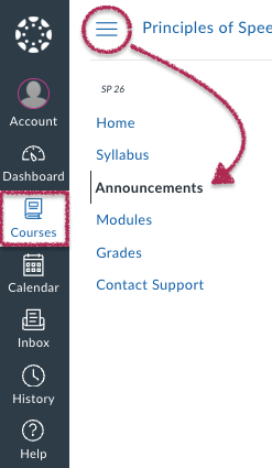 How to View Announcements in Canvas: Navigate to your course tile located on your main dashboard. Click on the "Announcements" link in the course navigation menu on the left. Here you will see all global and course-specific announcements. Types of ...